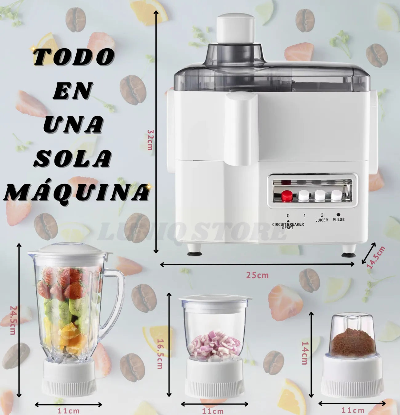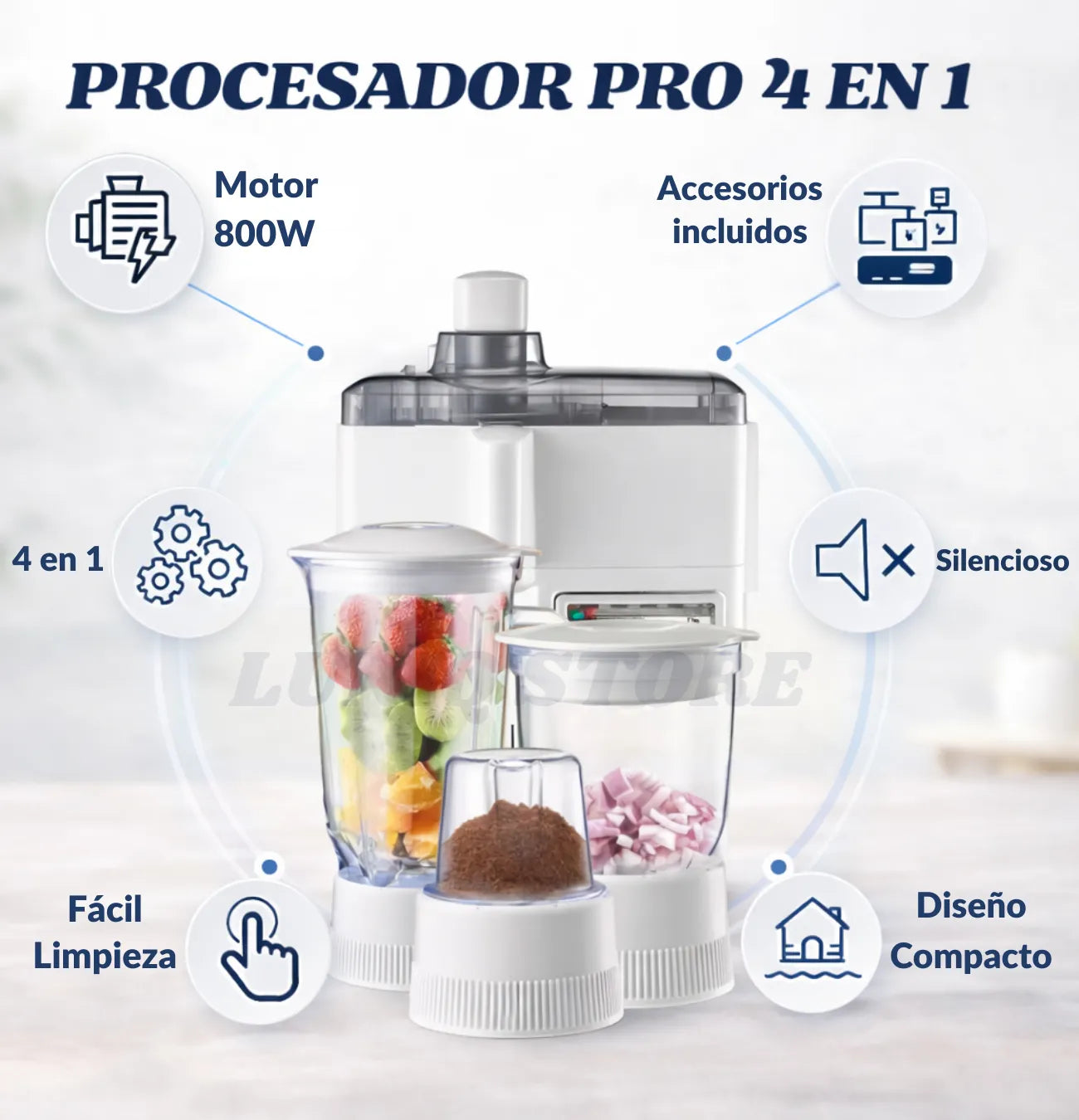 Sí. Cuenta con 800W de potencia, ideal para frutas, verduras y frutos secos, ofreciendo resultados rápidos y consistentes incluso en uso frecuente.